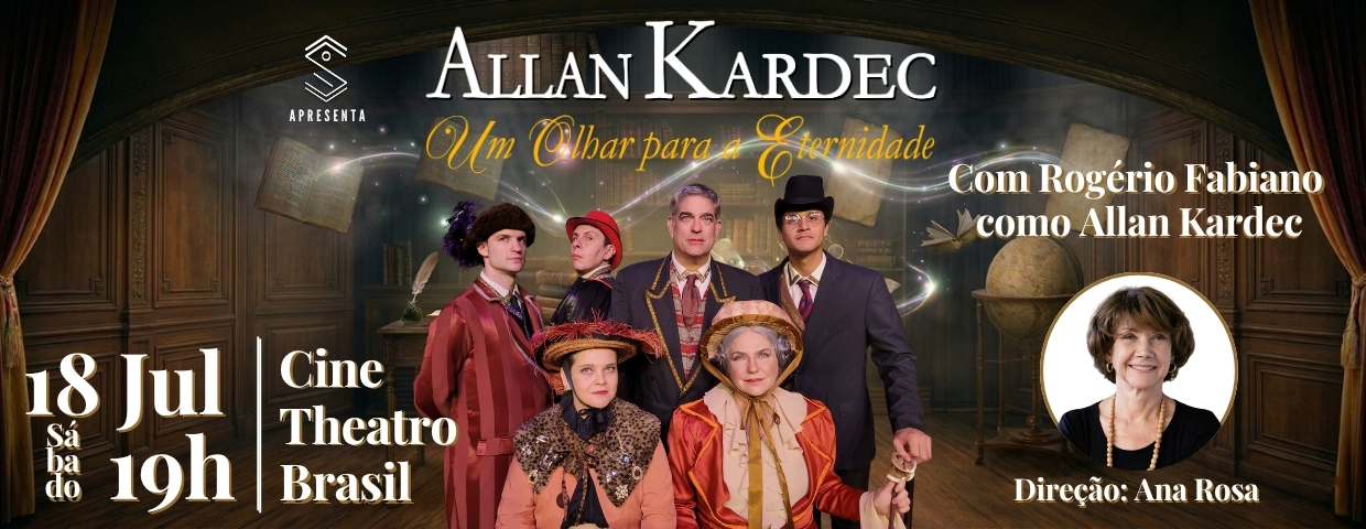 A capital mineira vai receber uma montagem que promete levar muita emoção ao público. No dia 05 de outubro, sábado, às 19h, o Cine Theatro Brasil Vallourec (Av. Amazonas, 315, Centro) será palco para o espetáculo "Allan Kardec – Um Olhar para a Eternidade", produção com uma narrativa que aborda a espiritualidade e o amor eterno. Sob a direção de Ana Rosa, renomada atriz e diretora, a peça explora a trajetória de Allan Kardec, trazendo à cena um elenco talentoso que se desdobra em múltiplos personagens para contar essa história fascinante. Os ingressos já estão à venda por meio da plataforma Eventim.